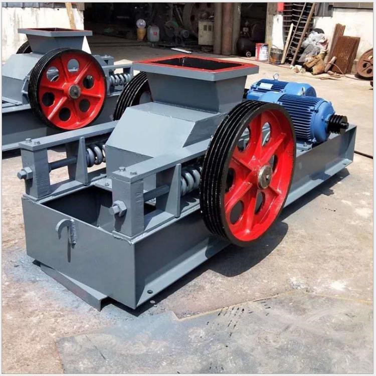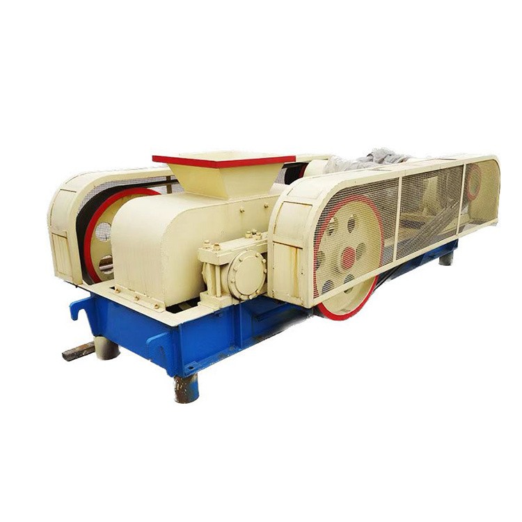 對(雙)輥破碎機是利用兩個高強度耐磨合金破碎輥,相對旋轉(zhuǎn)產(chǎn)生的高擠壓力來破碎物料,物料進入兩輥間隙(V 型破碎腔)以后,受到兩破碎輥相對旋轉(zhuǎn)的擠壓力和剪切力作用,在擠軋、剪切和嚙磨下,將物料破碎成需要的粒度從排料口排出。